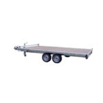 La remorque plateau 32680 Lider a les roues dessous, 2 essieux, un arrêt de charge ainsi que 8 poignées d’arrimage.