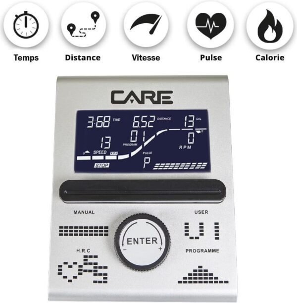 - Suivi de performance : Écran LCD intégré affichant la distance, la vitesse, le temps et les calories brûlées pour un suivi précis de l’entraînement.